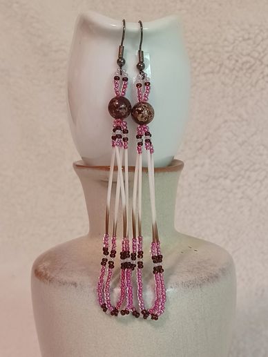 Porcupine quills beaded with glass seed beads & pink Rhodonite stones.